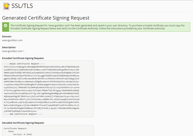 Obs. 2: O cPanel não exige uma senha para seu CSR, mas recomenda inserir uma descrição como "CSR for www.seudominio.com 9/13/2016" que ajuda a identificar essa CSR daqui para frente.