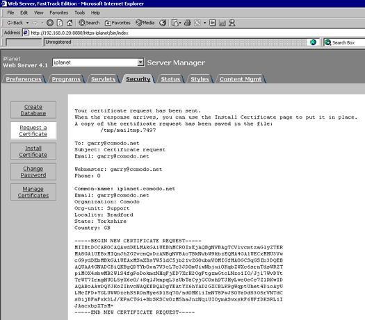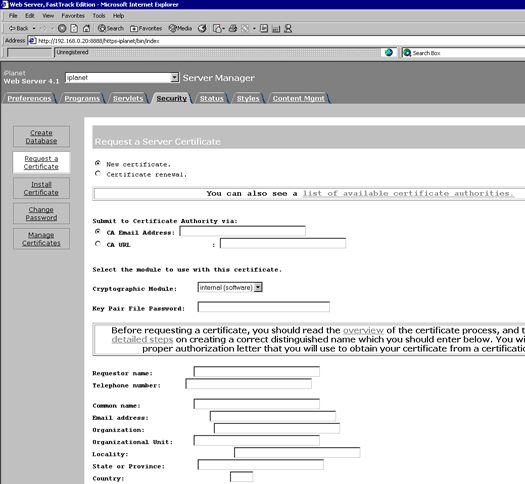 Gerando a CSR no iPlanet Web Server